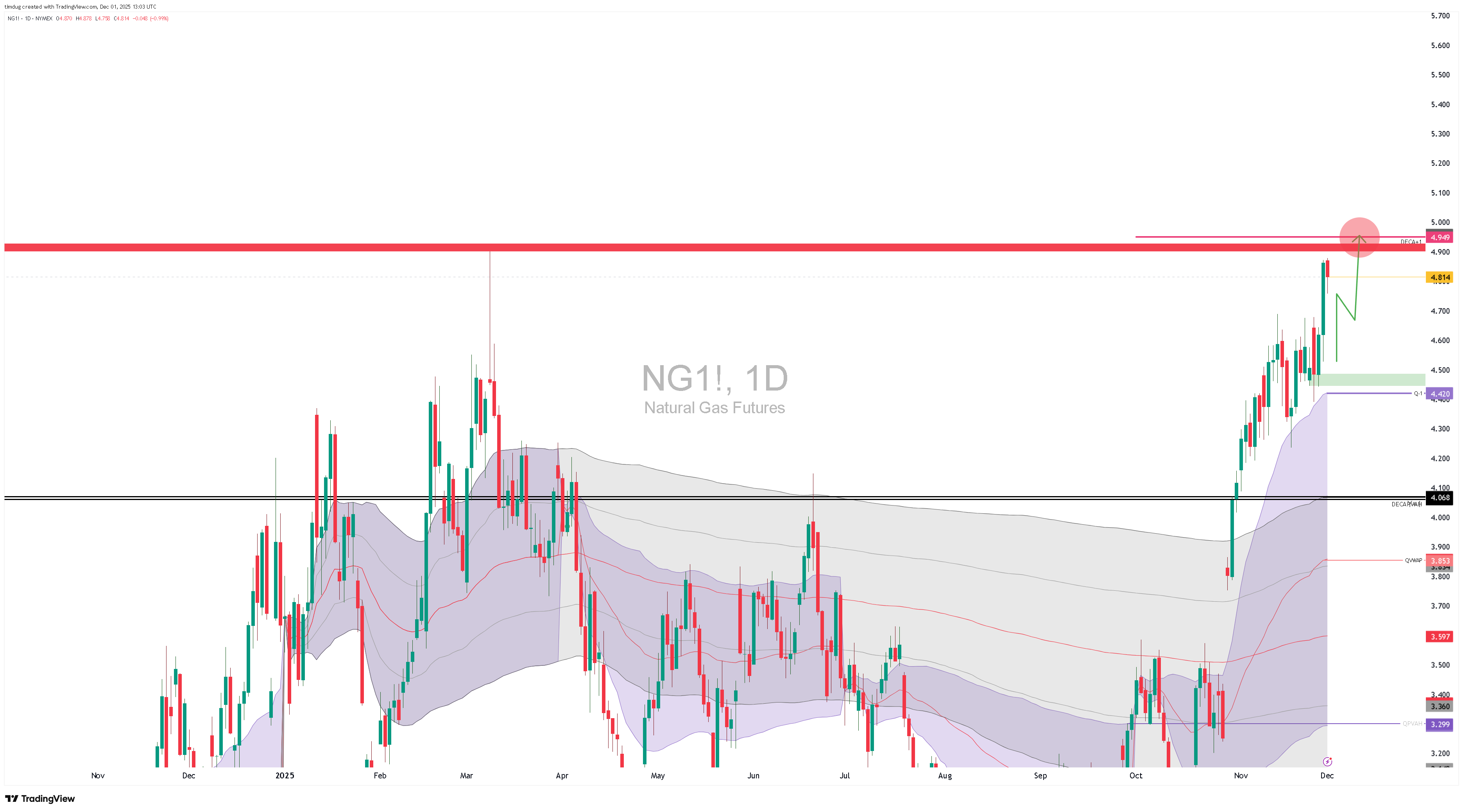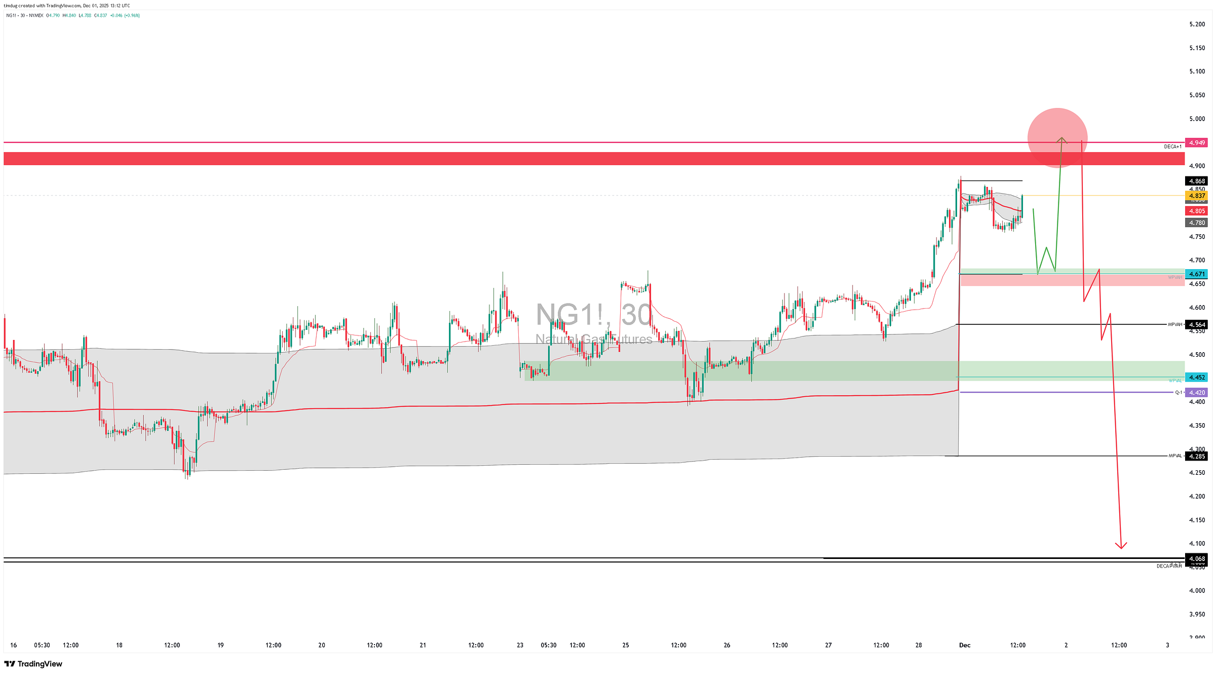 Bias: short after trade above $4.949.