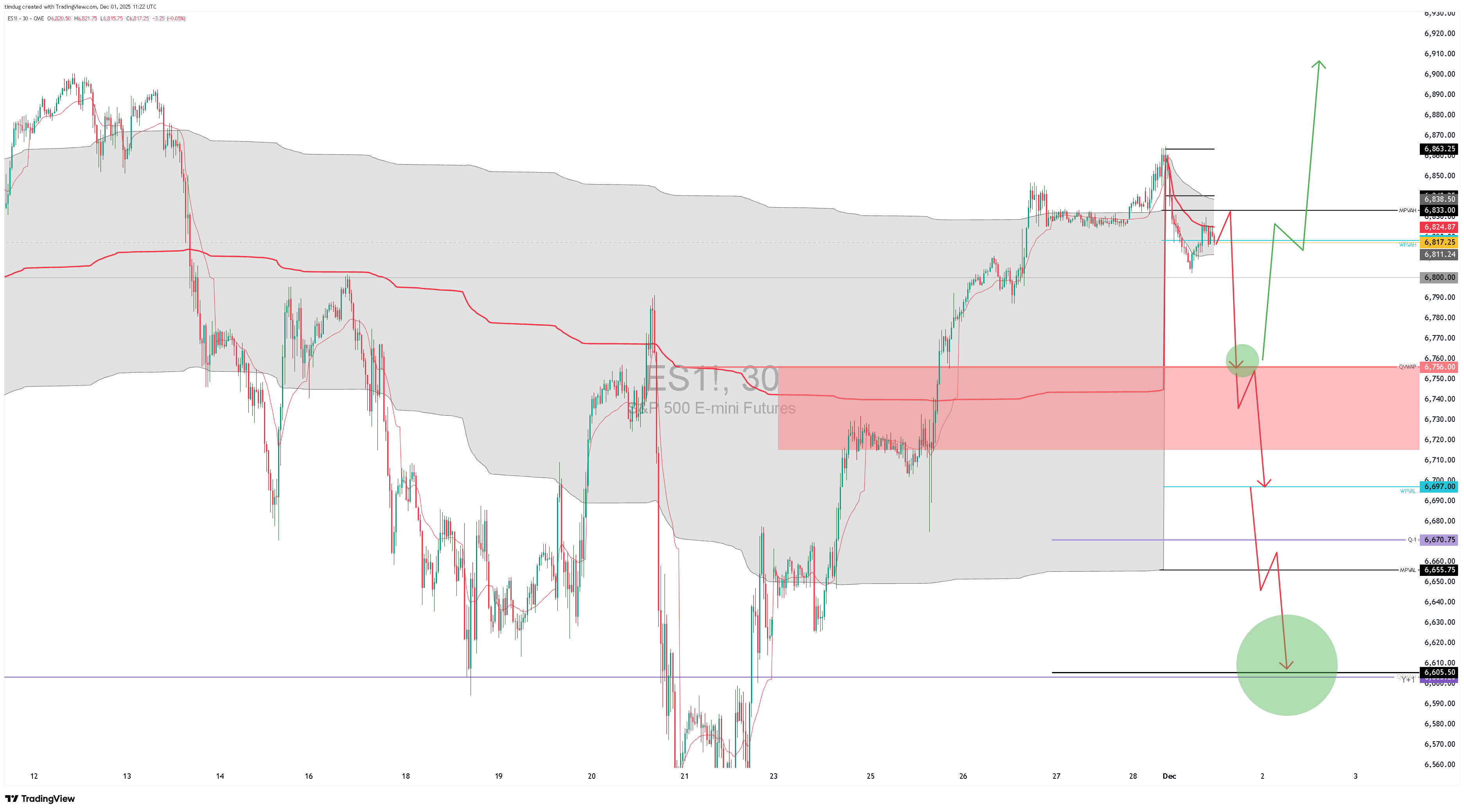 Bias: Short intraday to QVWAP. Then looking for longs at or above $6756.00 QVWAP