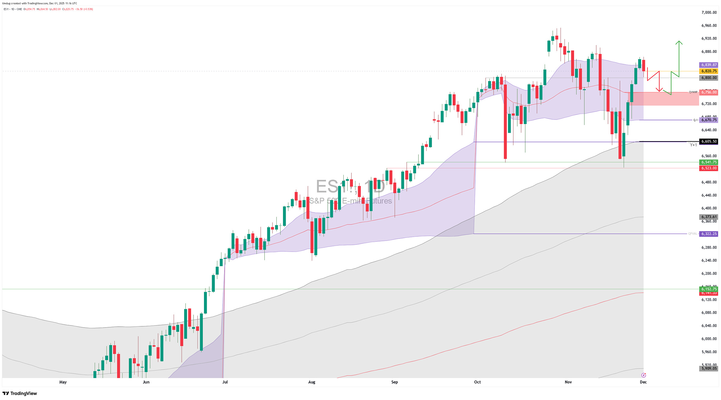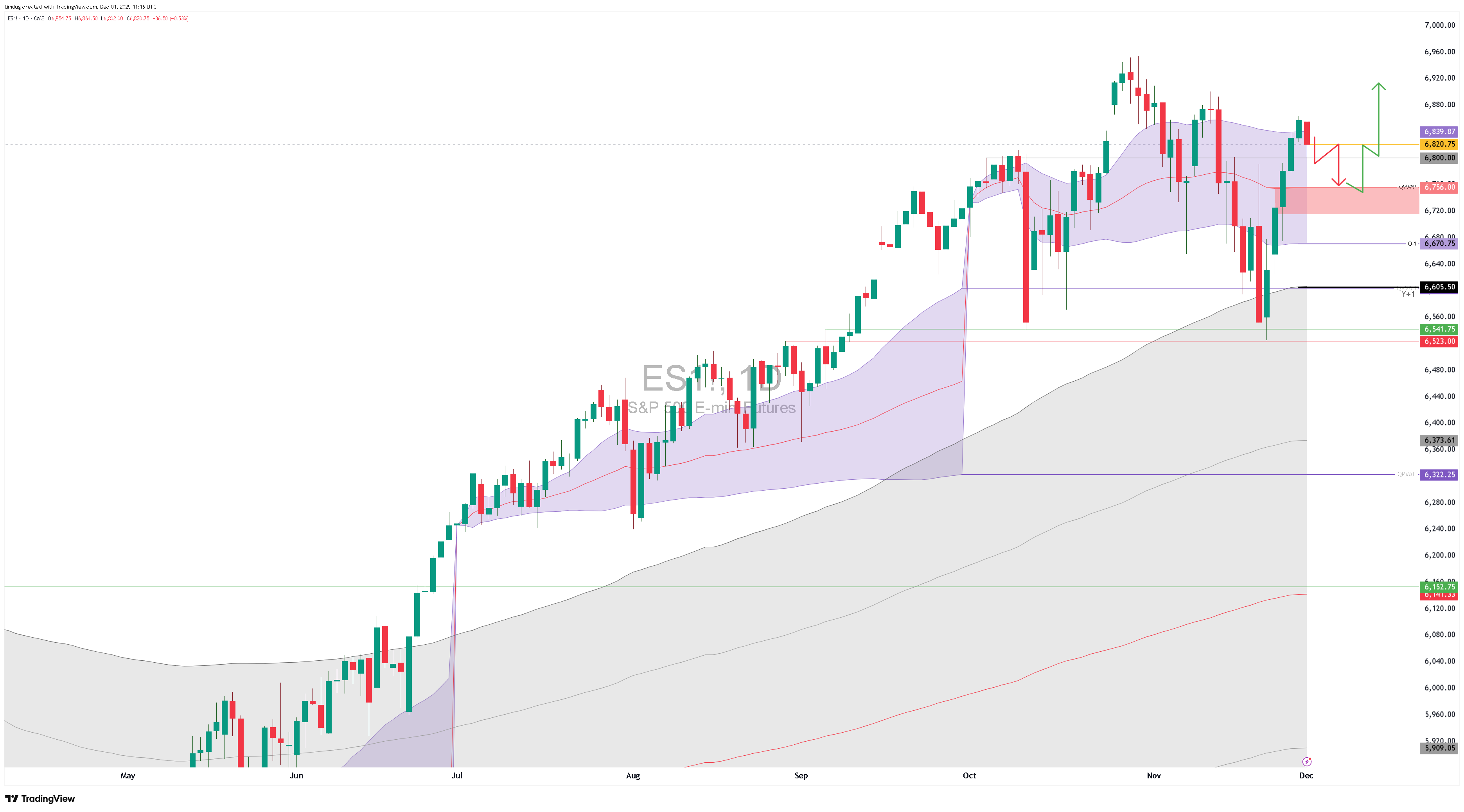 ES Futures. Daily bar. Y & Q vwaps.