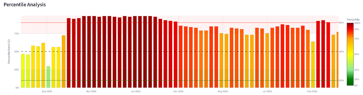 Notes: Spec Shorts are coming off crowded high levels over September (above 90th percentile). Given that we have no data in October, we can imagine if they stayed that short, they would have been ripped with the Gas rally. I think seasonally we are due a pullback in Gas as we move into trading the Jan 26 contract (last week we rolled on volume).