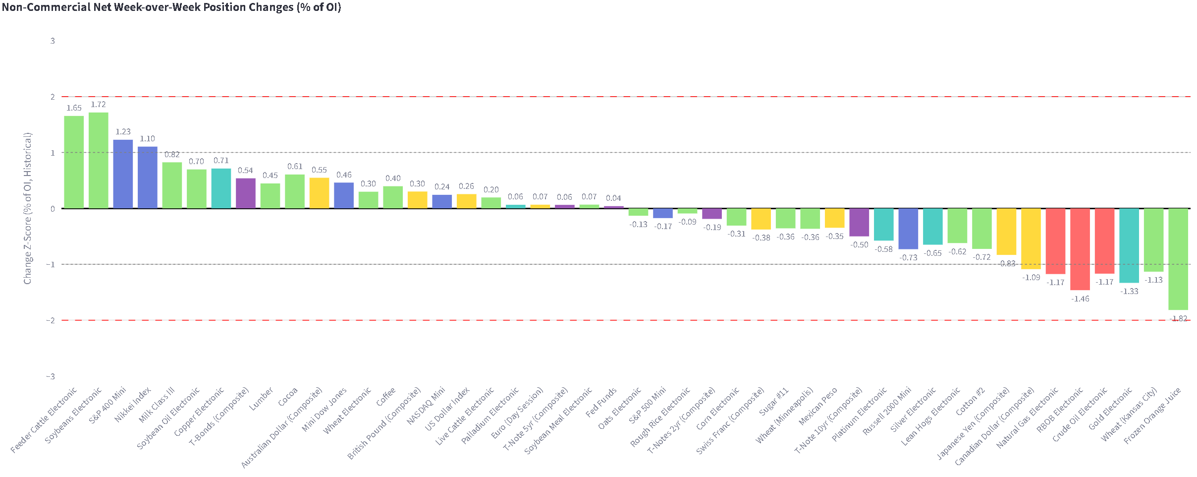 General notes: A top level snapshot from our C.O.T (Commitment of traders) analysis tool. This chart shows the changes in open interest since our last C.O.T data on September 30th.