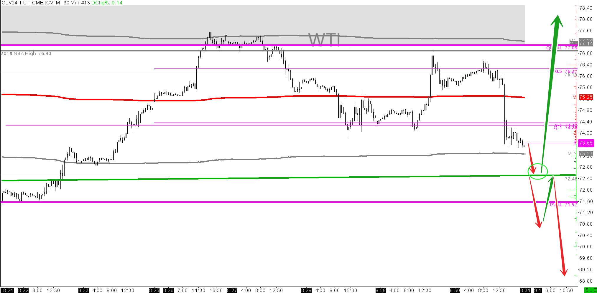 All this said, we have been sold down quite hard from Monday's highs. It does not make any fundamental or technical sense, however what does make sense is that we drive into deep value to then rally out of. From the Q-PVAL $77.05 level. The market is balanced down on the Q, so the rejection here was to be expected. The only large supports that are next are Yearly -PVAL $71.57. So I'll let the news develop from here.
