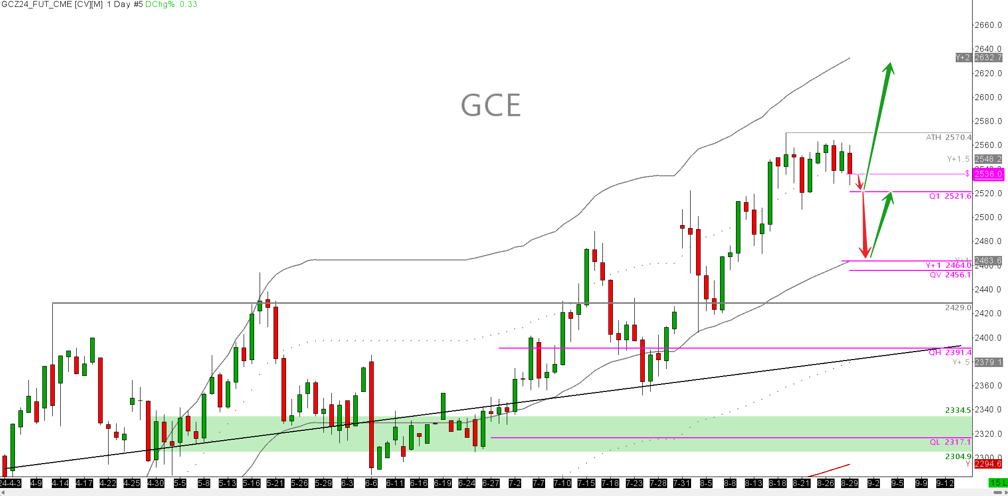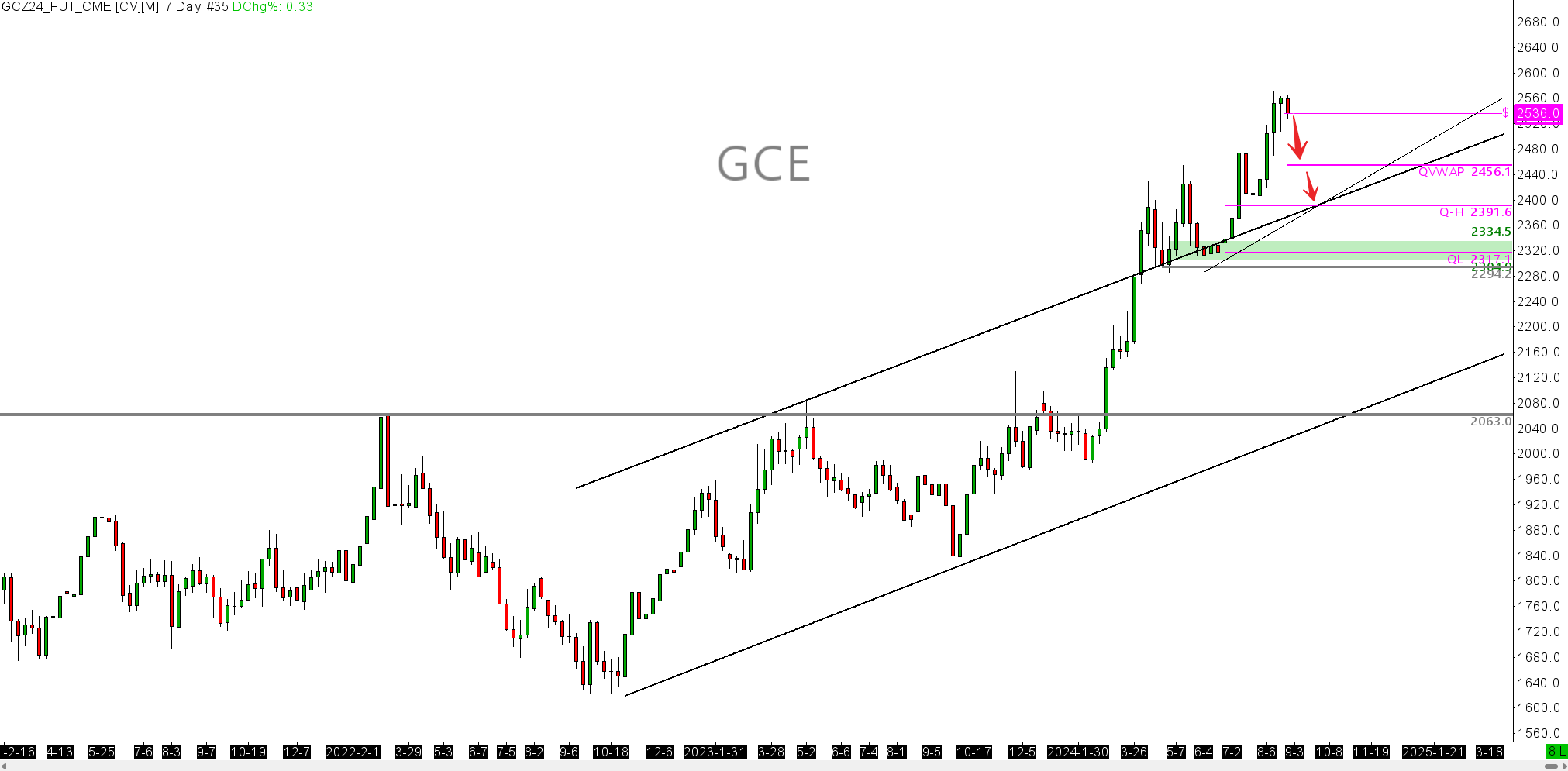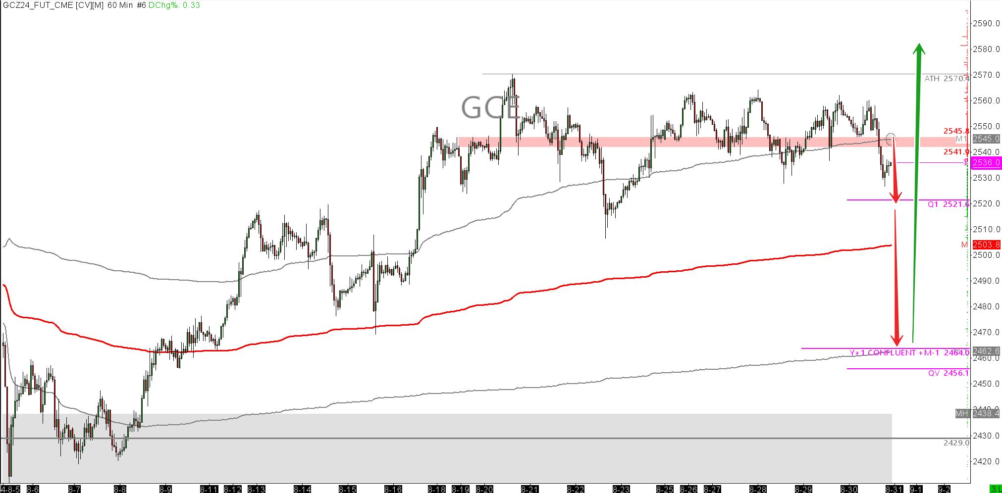 Gold has had an incredible year and I think it will continue to do so. It is simply a case for me that we have spent so long, very expensive, that we need to offer a bit of value up to the market to continue to rally to significant higher highs. So a reasonable pull back 2 weeks ahead of FOMC would be interesting. Y+1 $2464 with stops below Quarterly VWAP Is a nice swing trade for me. I think I would even be interested in $2391 at the Quarterly Prior value high.