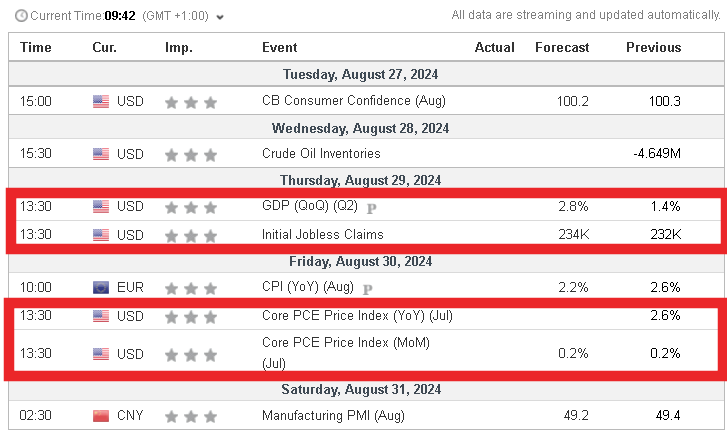 Looking to Thursday, GDP is a really hot potato. With the BLS marking down 818,000 jobs losses last week, we cannot ignore that this will have a read across to GDP in a negative way. Before the BLS data revision, I would have said GDP is set to remain strong and buoyant for stocks. However, now. We could see an inline or miss figure. This would be bullish for stocks in that it will be yet another data point that corners the FOMC into the September cut. 36.5% is the number by how much the market is pricing a 50bps cut for september. With only 63.5% priced for 25bps. This tells me that 36.5% of the market are smoking crack….again. So net net. It will be a 25bps cut.