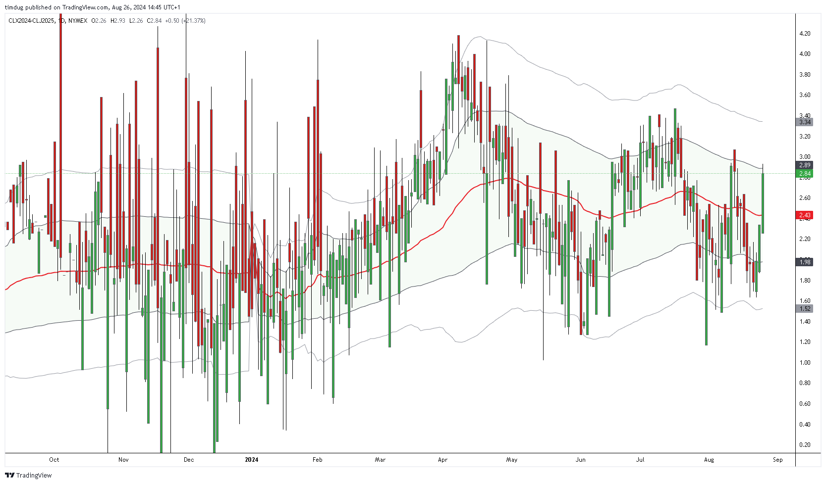We have entered one of the strongest time spread periods on the oil curve for the year looking at the X/J I.E November24/ April 25 timespread. This is something that we trade on heavily and we expect over the next 4 weeks that this spread will appreciate $2+. Current price $2.85. If you are a spread trader on calendar spreads, please tune into the room with some discounts available.