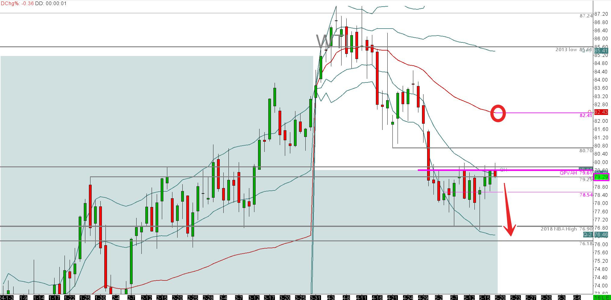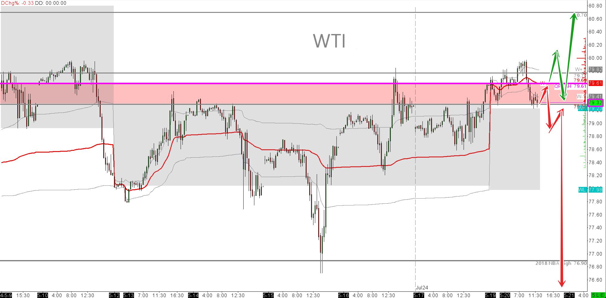 For me, personally I think there has to be SOME premium priced into Oil over this Iranian situiation. I currently dont see this on the price action. The only bullish technical I see is we currently hold over the W-PVAH $79.23. This marks the market as imbalanced up. Ill watch W-VWAP as it evolves throughout today and thge week in order to thus monitor any premium rally. This would bring us up to test Q-VWAP Currently $82.41. Please monitor the Q-vwap level daily.