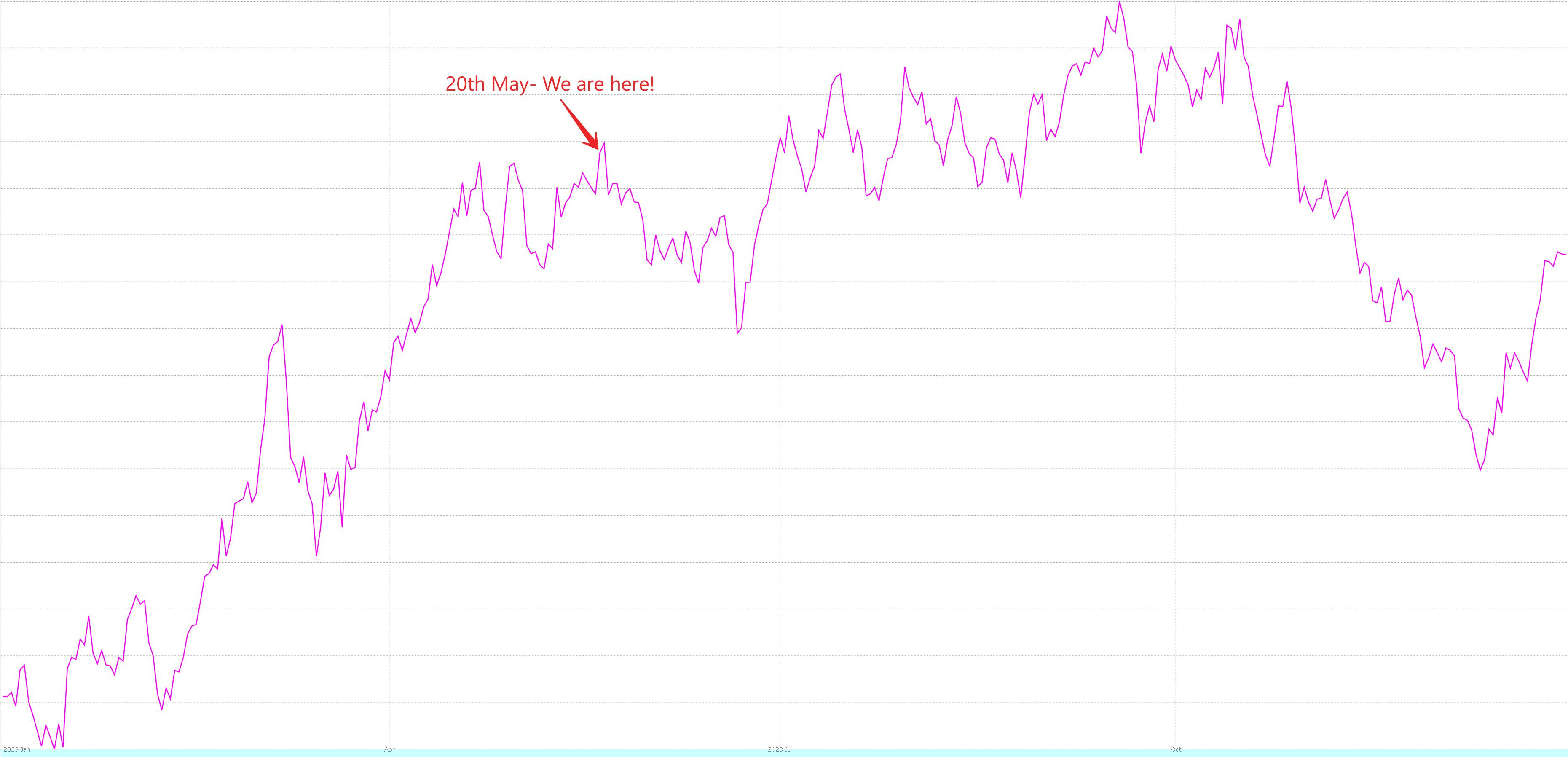 Oil has really been stuck in the boggy ground, marked by an overly bought Middle Eastern conflict that is now simmering. The latest development—the death of the Iranian President—will not provide any further clarity on the macro picture this week. It is most probable that the elections to come in Iran are a tailwind for US and Israeli aspirations in the region.