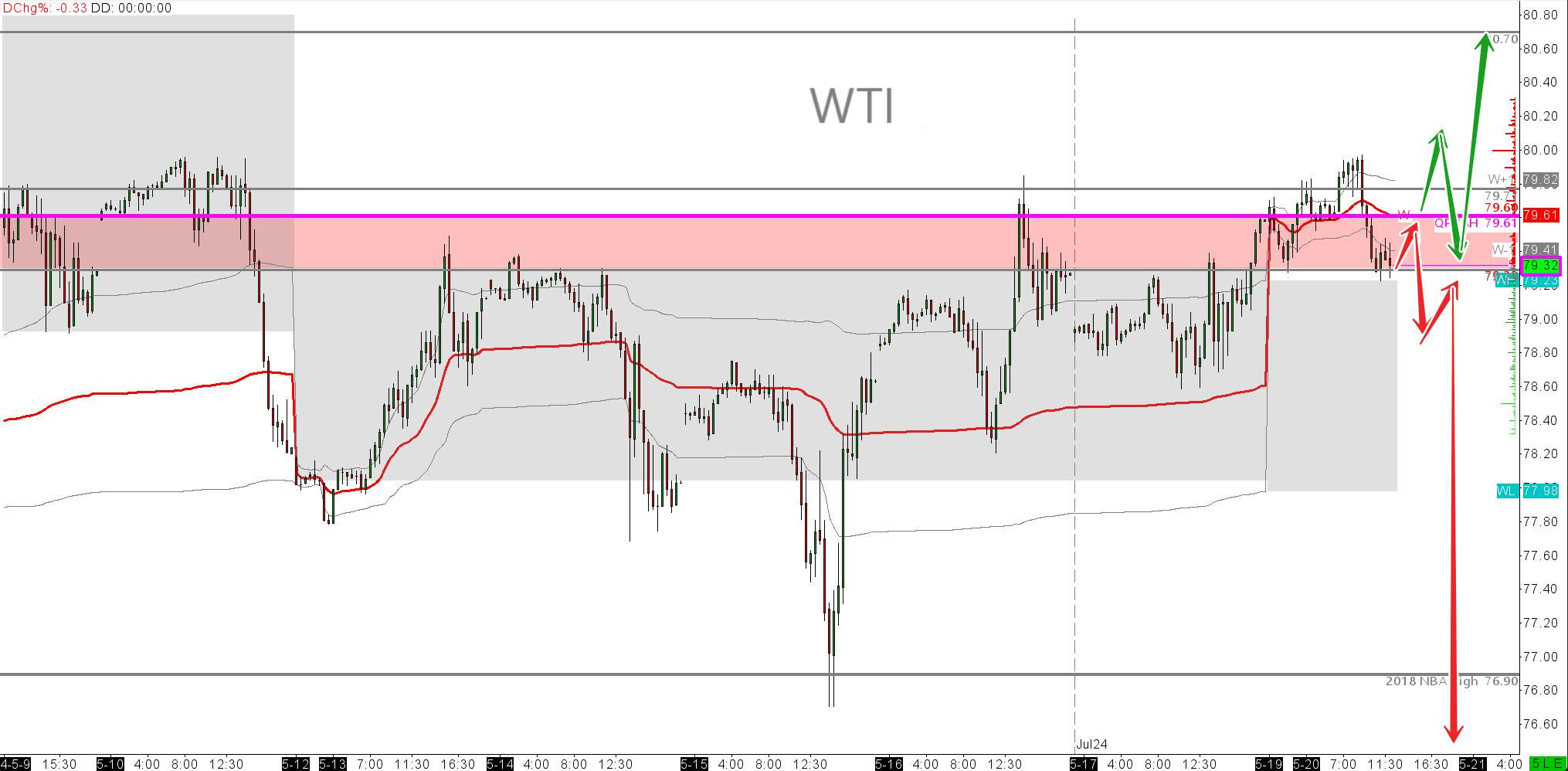 Below on the 30min chart you can see the type of movements I am expecting out of oil in both an up and down scenario. I will be mainly leaning on $79.61S, $79.30s and $79.23